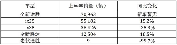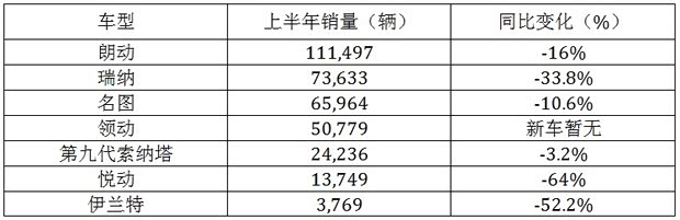 从 表中可以看到,北京现代轿车品类的朗动、名图、瑞纳是总销量的构成主力,三款车上半年合计批售量超过25万辆,占全部销量的近五成。不过数据虽然漂亮,但 值得注意的是,三车都出现了不同程度的同比下滑,尤其是瑞纳受困于车型老化和小型车市场的萎缩,早已不复当年月销两万辆之勇,下滑幅度最为明显。