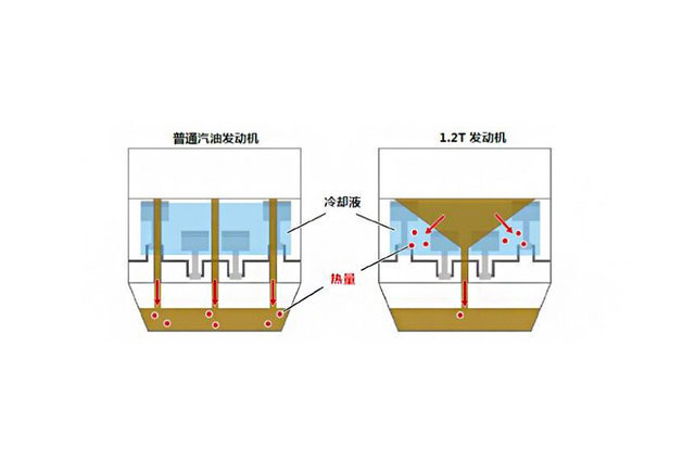 丰田1.2T发动机在气缸水套内部采用了由发泡橡胶和不锈钢薄板制成的新型隔块,这种隔块会通过自身热胀冷缩的特性控制发动机内不同区域的温度,从而实现降低摩擦,减少爆震几率的作用。