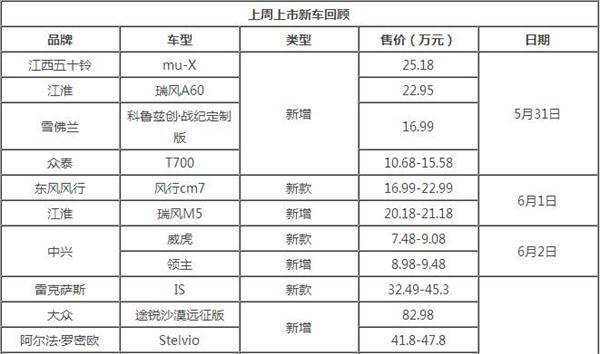 发表日期:2017-06-05端午小长假过后,本应该是犯节后综合症时候。然而深港澳车展的到来,让车市迎来了一大波新车的上市。网通社对上周(5月30日-6月4日)的上市新车进行了梳理,共有20款新车在四天内密集上市,车型包括微型车、紧凑型车、中大型车、皮卡、MPV等等,不一而足。尤其是在6月3日开幕的深港澳车展当天,就有12款新车上市。