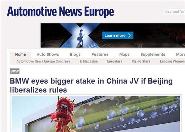 发表日期:2017-06-07国外媒体日前报道,“未来几年,如果中国开放跨国汽车公司在中国的合资企业中的持股比例,宝马公司将增持在华合资公司股比”。