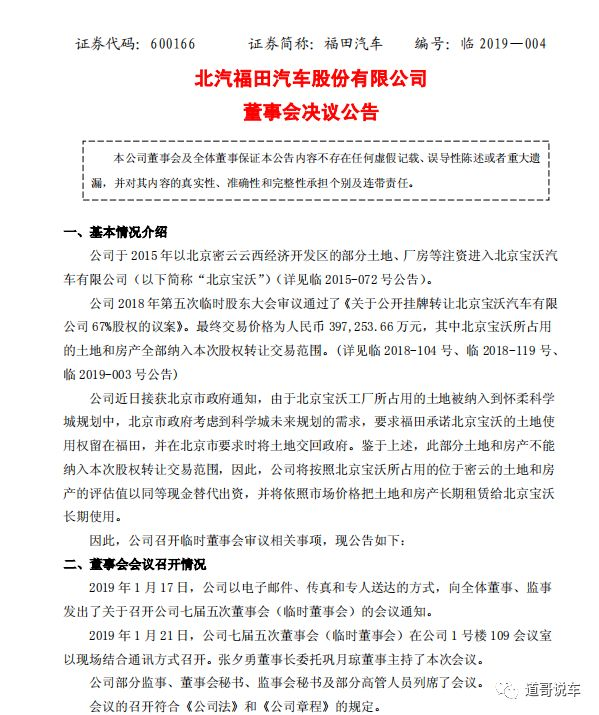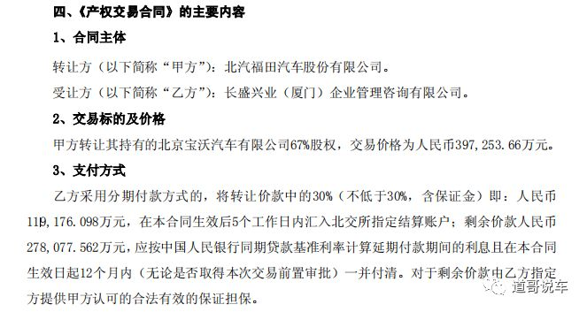 但根据福田汽车公告内容显示,公司董事会同意北京宝沃所占用的位于密云的土地和房产以评估值置换出资。为此,福田汽车将以等同于前述资产在本次股权转让的评估值16.93亿元的现金支付给北京宝沃以替代土地和房产出资,其中9亿元应于北京宝沃67%股权转让工商变更登记手续完成后5个工作日内支付,剩余现金应于2019年3月31日之前支付。